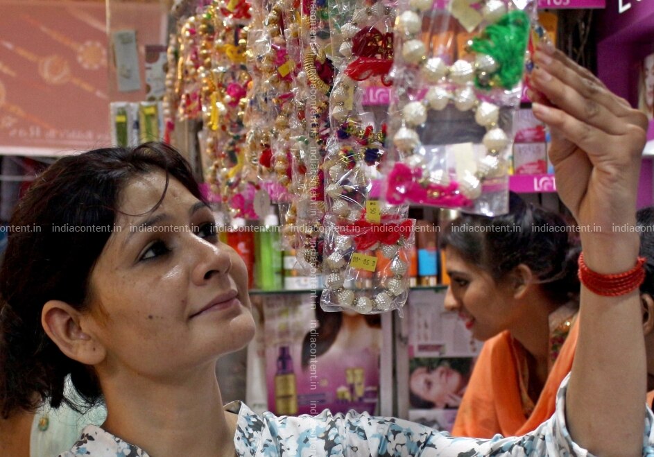 New Delhi Women busy buying rakhis on the eve of Raksha Bandhan in New Delhi on Aug 25 2018. Photo IANS