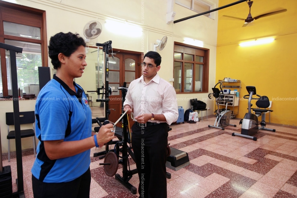 Sunetra Arun Paranjpe Cricket Player of India with Nikhil Latey 27 Director of Sports Science and Rehab OGQ in Mumbai Maharashtra India. Nikhil Latey Physiotherapist at health center ZYM Sunetra Paranjpe