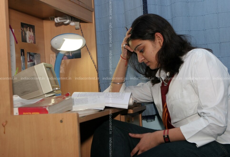 Class 12 studant Ms Nistha Kapoor reading at Home SBI flats East of Kalash New Delhi