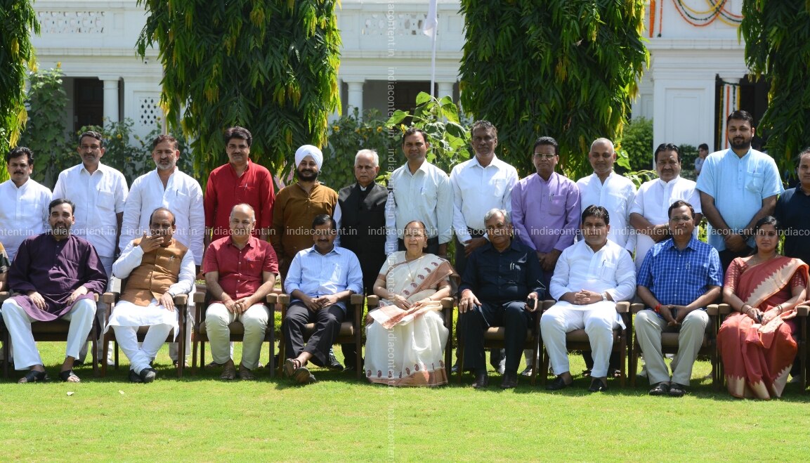 NEW DELHIINDIA AUGUST 25 Lok Sabha Speaker Sumitra Mahajan WITH Delhi Assembly Speaker Ram Niwas Goel Deputy Speaker Bandana Kumari Delhi Chief Minister Arvind Kejriwal WITH his deputy Manish Sisodia Leader of opposition IN Delhi Assembly Vijender Gupta AND other MLAs pose FOR a GROUP photograph during the orientation programme AT the Delhi Assembly IN NEW Delhi.Photo BY Parveen Negi India Today GROUP Sumitra MahajanRam Niwas GoelBandana Kumari Arvind KejriwaManish SisodiaVijender Gupta