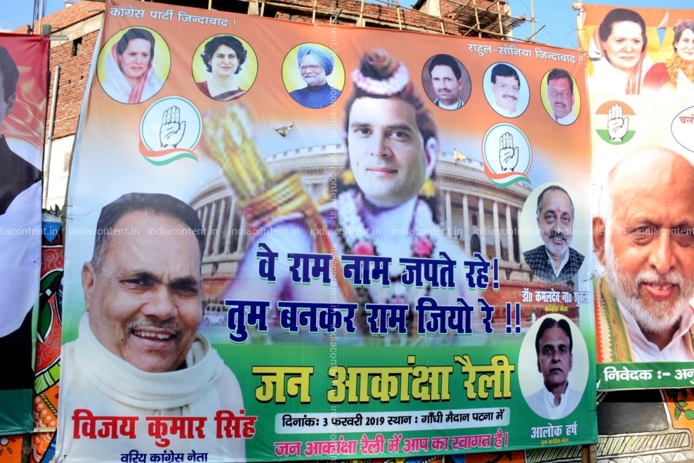 Patna A poster depicting Congress President Rahul Gandhi as Lord Ram comes up in Patna ahead of the party's Jan Akansha rally on Jan 29 2019. Photo IANS