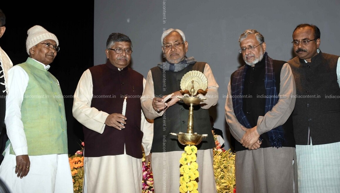 Patna Bihar Chief Minister Nitish Kumar Deputy Chief Minister Sushil Kumar Modi and Union Electronics and Information Technology Minister Ravi Shankar Prasad during the inauguration of STPI New Incubation Facility at Gyan Bhawan in Patna on Feb 2 2019. Photo IANS