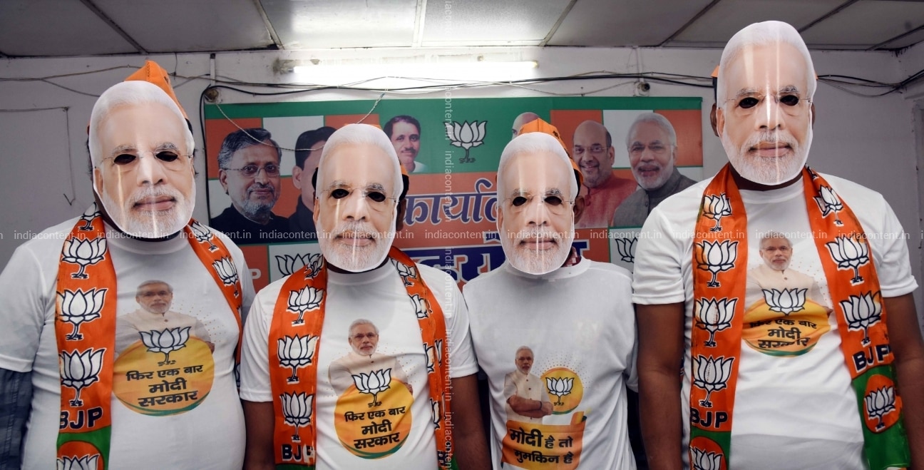 Buy Patna BJP workers wear masks of Prime Minister Narendra Modi during the distribution of campaign material at the party office ahead of 2019 Lok Sabha elections in Patna on April 1 2019 Photo IANS Pictures, Images, Photos By IANS - News pictures