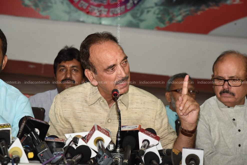 Patna Congress leader Ghulam Nabi Azad addresses a press conference in Patna on May 15 2019. Photo IANS