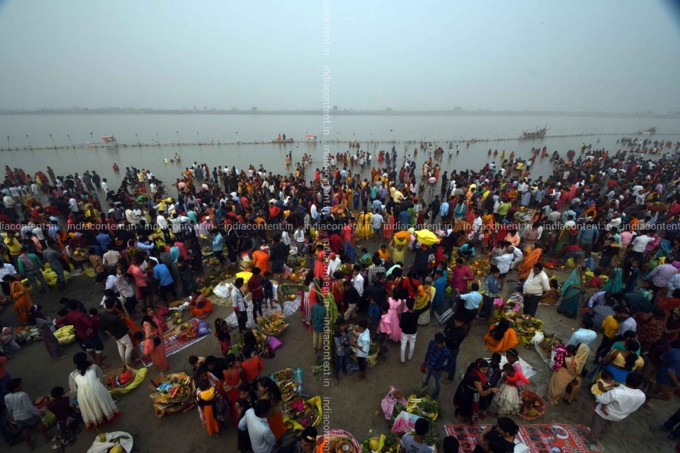 Patna Devotees throng the banks of Ganga river Chhath Puja celebrations in Patna on Nov 13 2018. Photo IANS