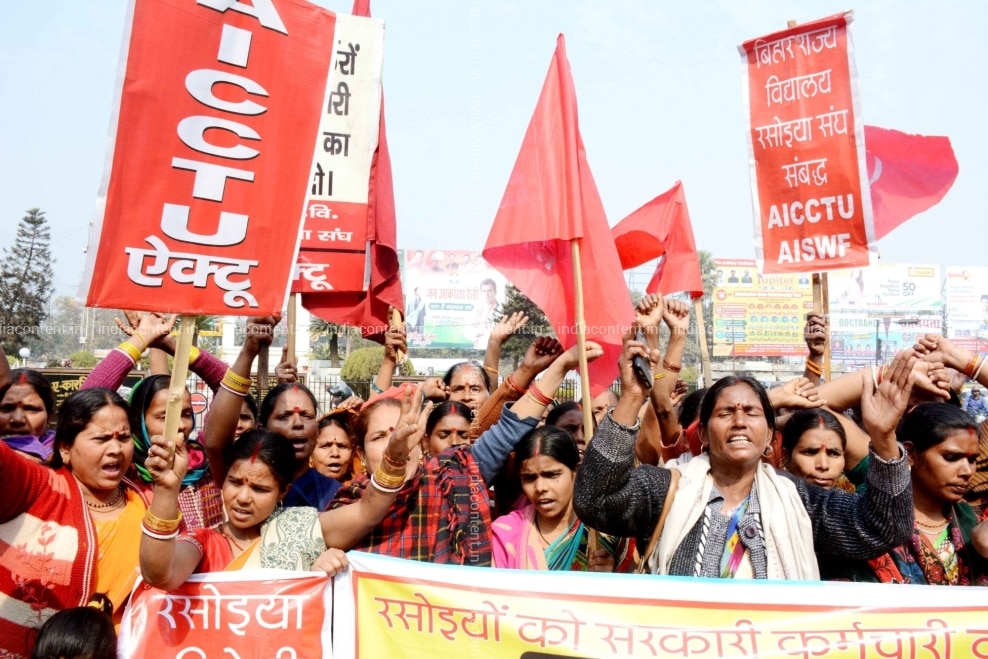 Buy Patna Mid Day meal workers under the banner of All India Central Council of Trade Unions AICCTU stage a demonstration to press for their demands in Patna on Feb 1 2019 Photo IANS Pictures, Images, Photos By IANS - Others pictures