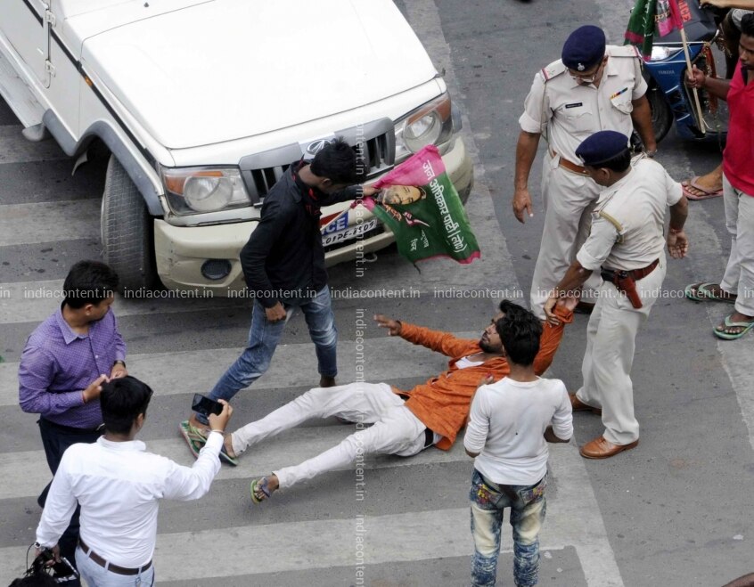 Buy Patna Police stops Jan Adhikar Party JAP workers as they stage a demonstration during Bihar bandh to press for their various demands in Patna on July 7 2018 Photo IANS Pictures, Images, Photos By IANS - News pictures