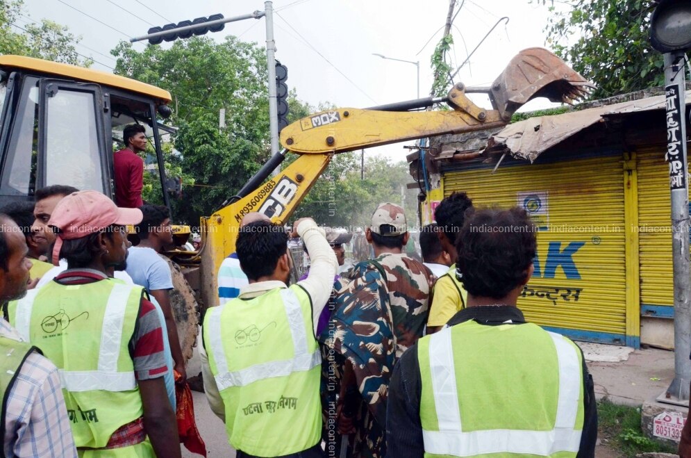 Buy Patna Several shops were demolished on Nala road as Patna Municipal Corporation PMC take initiates in anti encroachment drive in Patna on Aug 24 2018 Photo IANS Pictures, Images, Photos By IANS - Others pictures