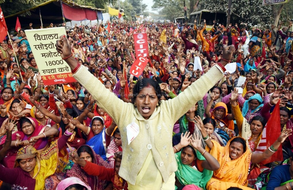 Patna Trade Union workers stage a demonstration to press for their various demands in Patna on Jan 23 2019. Photo IANS