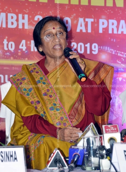 Patna Uttar Pradesh Tourism Minister Rita Bahuguna addresses at a press conference regarding Kumbh Mela 2019 in Patna on Jan 5 2019. Photo IANS