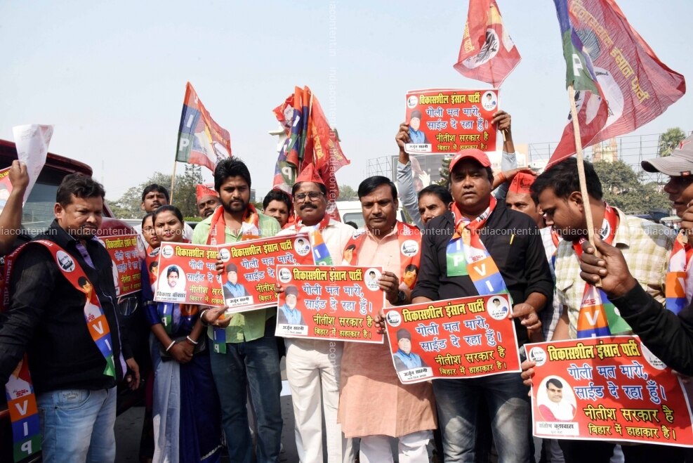 Buy Patna Vikassheel Insaan Party VIP workers stage a demonstration against increasing crime rate in Bihar in Patna on Nov 16 2019 Photo IANS Pictures, Images, Photos By IANS - News pictures