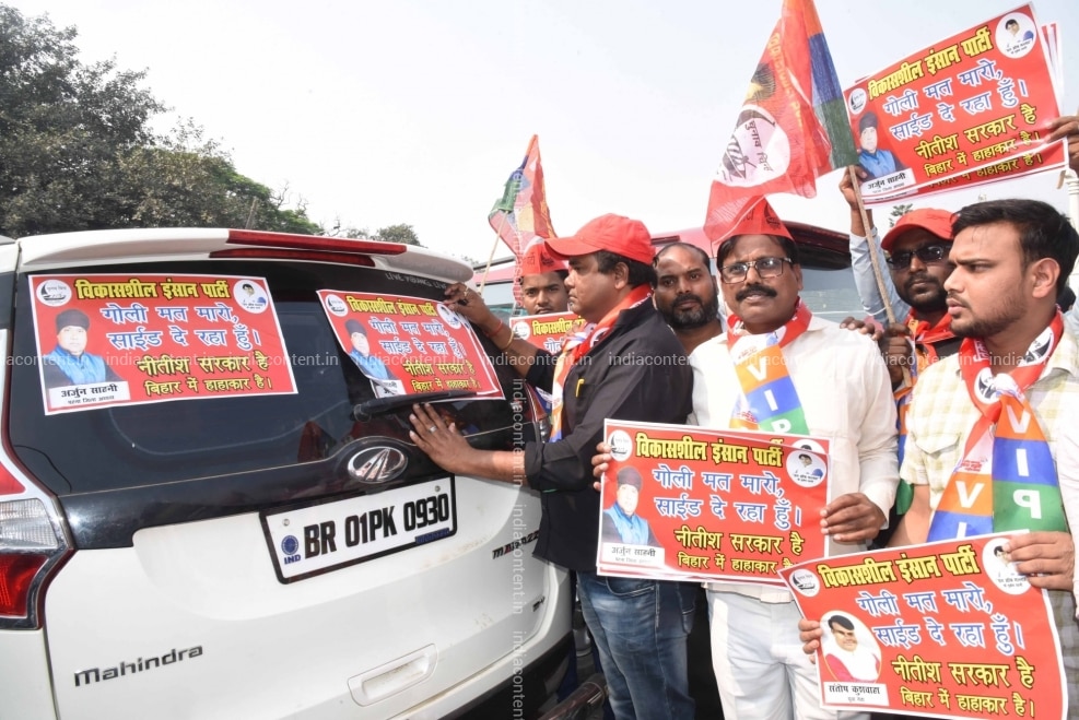 Buy Patna Vikassheel Insaan Party VIP workers stage a demonstration against increasing crime rate in Bihar in Patna on Nov 16 2019 Photo IANS Pictures, Images, Photos By IANS - News pictures