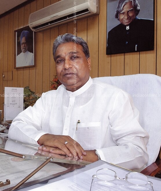 Prem Chand Gupta PC Gupta minister of company affiars independent charges Government of India talks on Mobile Phone at his office in Shastri Bhavan in New Delhi India