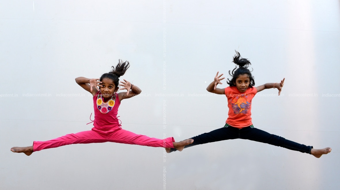Taniya and Sharmishtha Biswas Eight and 10 year old performing acrobatics from Beat Breakers at India Got Talent reality show. Photo is taken on 18th February 2014 in Mumbai. Photo by Mandar Deodhar