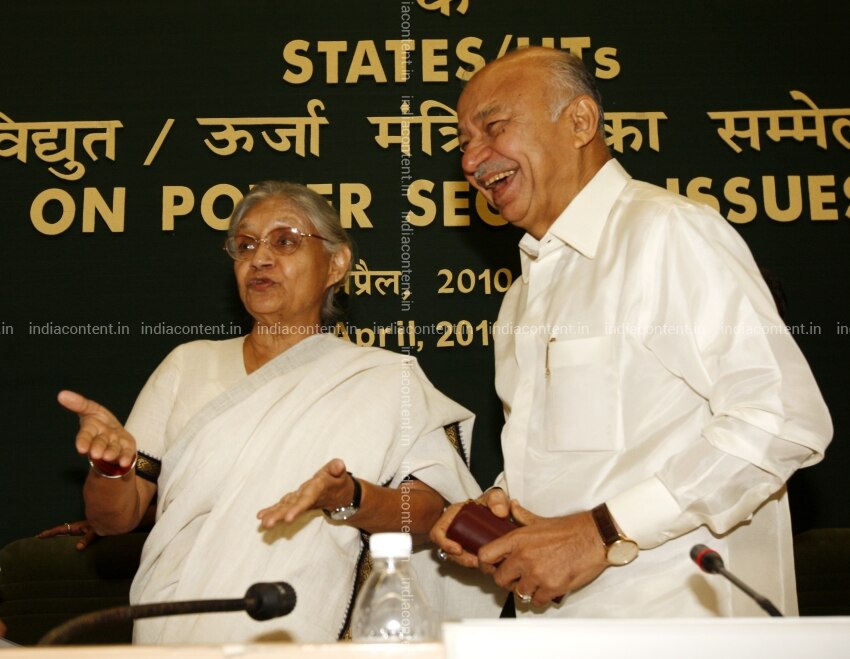 NEW DELHI INDIA APRIL 28 Delhi Chief Minister Sheila Dikshit IN conversation WITH UNION Minister FOR POWER Sushil Kr Shinde AT POWER Ministers conference IN NEW Delhi ON Wednesday April 28 2010.Photo BY Sipra Das India Today GROUP Sheila DikshitSushil Kr Shinde