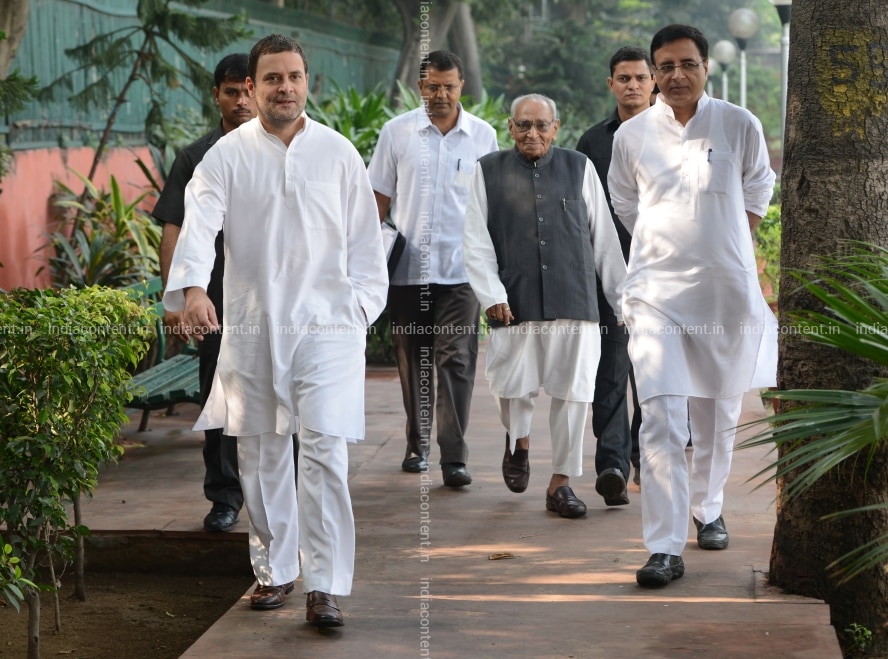 NEW DELHI INDIA OCTOBER 30 Congress Vice President Rahul Gandhi WITH Randeep Surjewala AND other leaders arrives FOR a meeting AT AICC headquarters IN NEW Delhi.Photo BY Parveen Negi India Today GROUP Rahul GandhiRandeep Surjewala