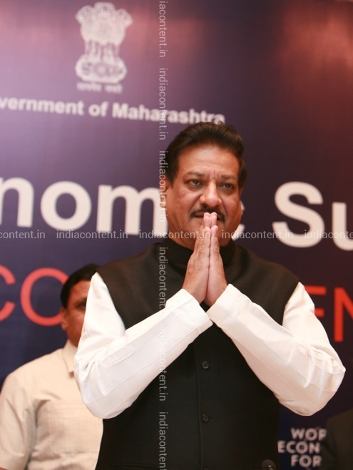 Prithviraj Chavan Chief Minister of Maharashtra during a pre WEF Summit conference in Mumbai Maharashtra Business Economy Meeting Politician Sushant Rao