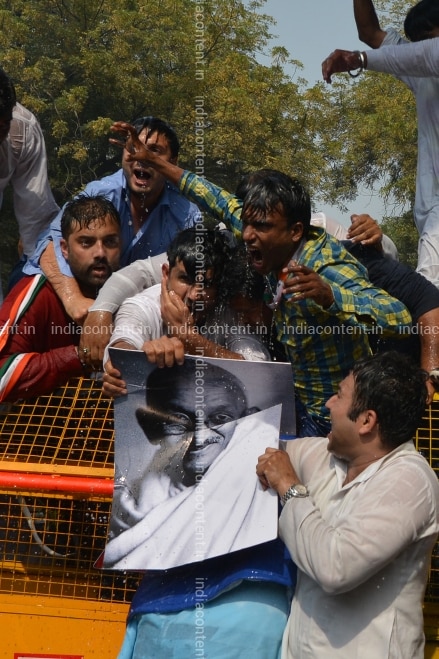 DELHI INDIA MARCH 02 Police USE water cannons TO disperse Youth Congress activists AT a protest AGAINST HRD Minister Smriti Iranis statement ON Rohith Vemula IN Parliament AT Jantar Mantar IN NEW Delhi.Photo BY Qamar Sibtain India Today GROUP