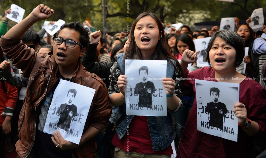 North East students participating in a protest against the Death of Nido Tania in New Delhi India Tuesday Feb 04 2014. Photo by M Zhazo