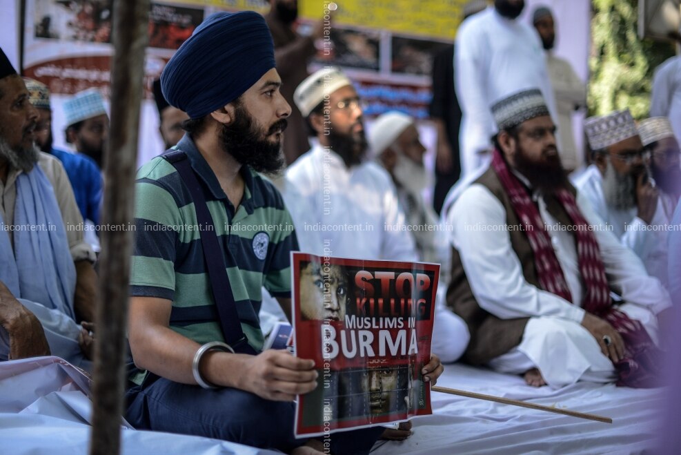 All India Tanzeem Ulama-e-Islam stage a protest against the killings of Rohingya Muslims at Jantar Mantar on Friday Sep, 15, 2017