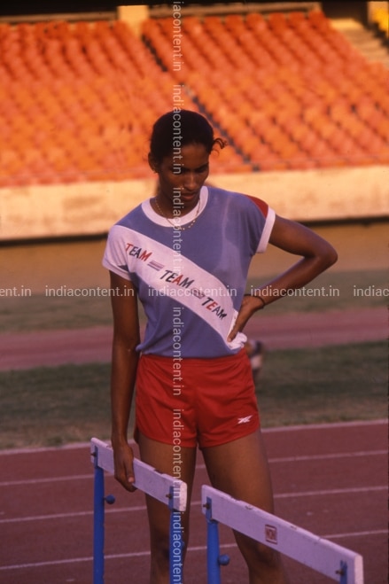 PT Usha Athlete from Kerala looking at the height of hurdles while practicing at a stadium Sports Profile