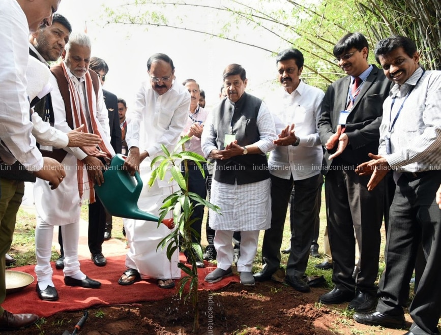 Pune Vice President M. Venkaiah Naidu plants a sapling at Vaikunth Mehta National Institute of Cooperative Management in Pune Maharashtra on June 22 2018. Photo IANS PIB