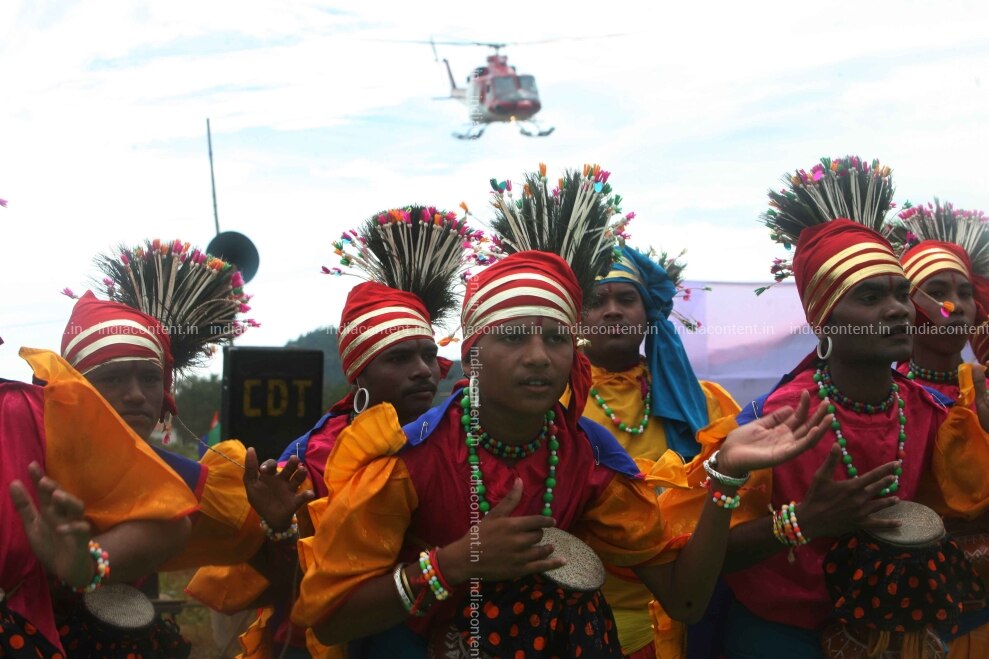 LANJIGARH INDIA AUGUST 26 Tribals welcome Congress General Secretary Rahul Gandhi during a rally at Lanjigarh in Kalahandi district of Orissa on August 26 2010. Photo by Kaushik Roy India Today Group