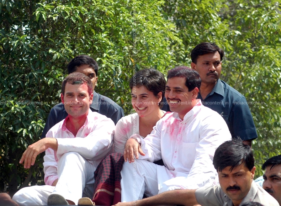 Rahul Gandhi Congress MP with Robert Vadra and Priyanka Gandhi Celebrating after Sonia Gandhi won the Rae Bareli Lok Sabha by election in Uttar Pradesh India