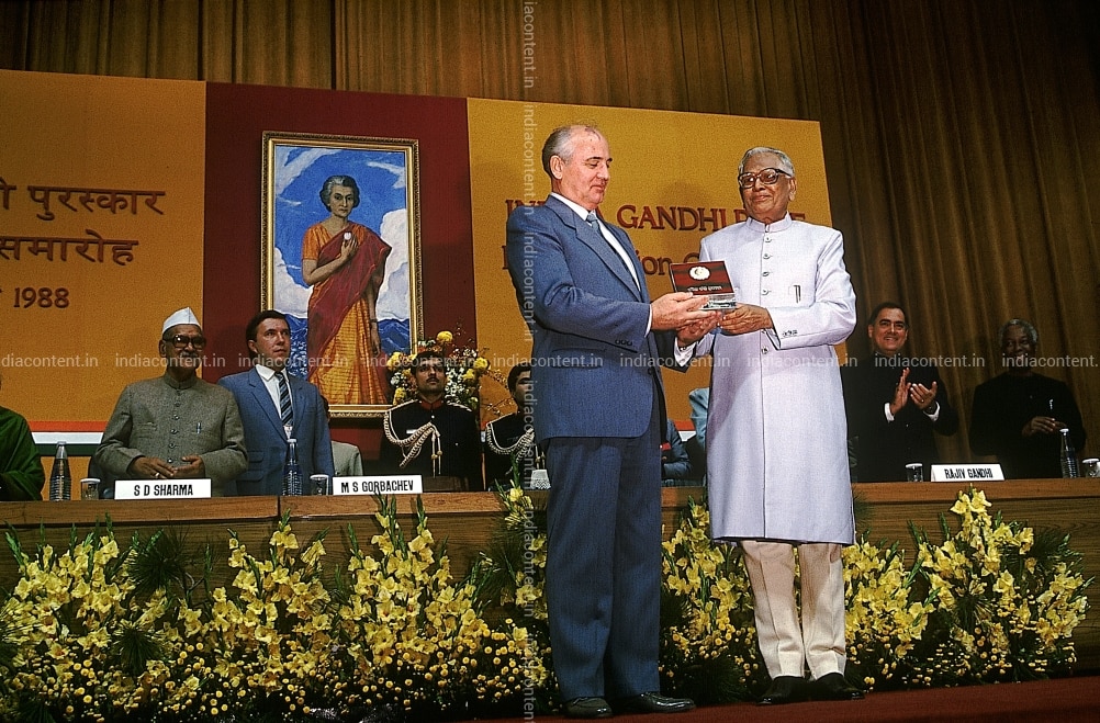 RAJIV GANDHI MIKHAIL GORBACHEV AT RECEIVING INDIRA GANDHI AWARD NEWS PROFILE