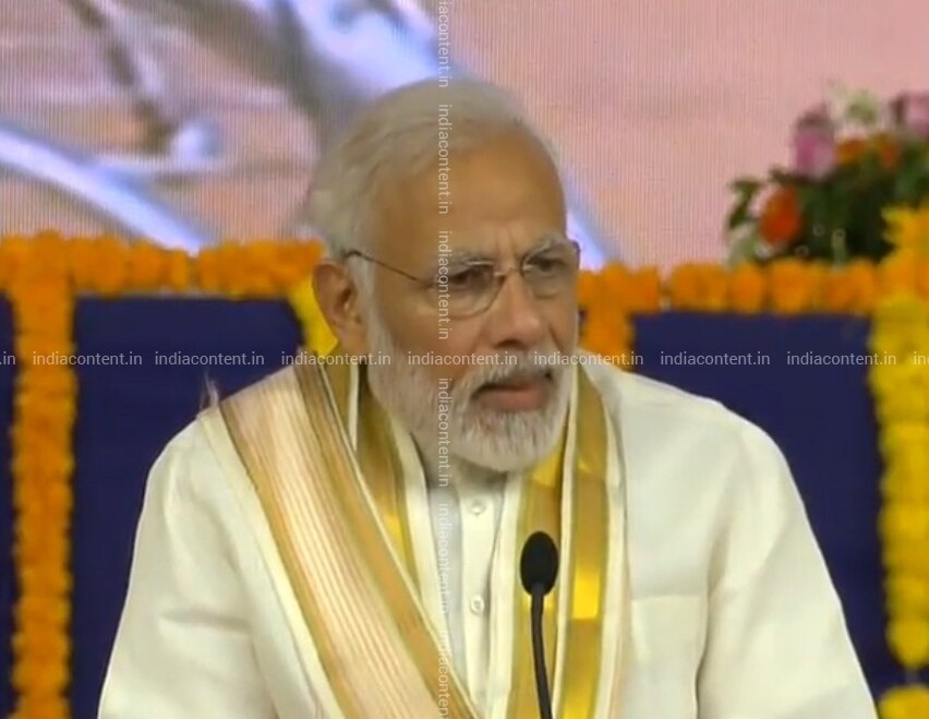 Rajkot Prime Minister Narendra Modi interacts with the beneficiaries of Pradhan Mantri Awas Yojana PMAY in Rajkot Gujarat on Sept 30 3018. Photo IANS BJP