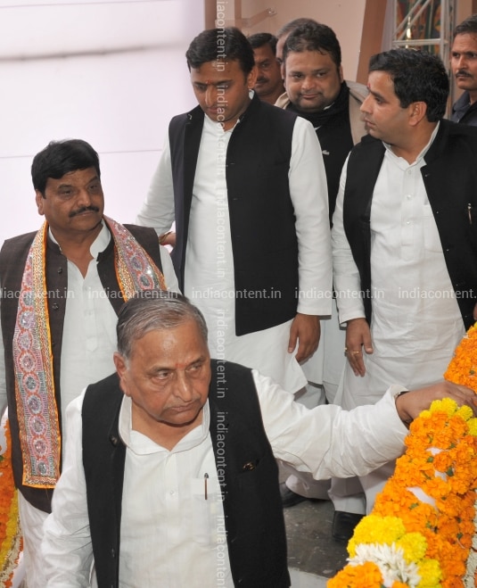 Mulayam Singh Yadav Shivpal Singh Yadav Akhilesh Yadav. Photo by Maneesh Agnihotri
