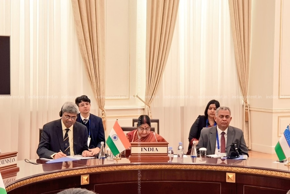 Samarkand External Affairs Minister Sushma Swaraj during the 1st India Central Asia Dialogue in Uzbekistan's Samarkand on Jan 13 2019. Photo IANS MEA