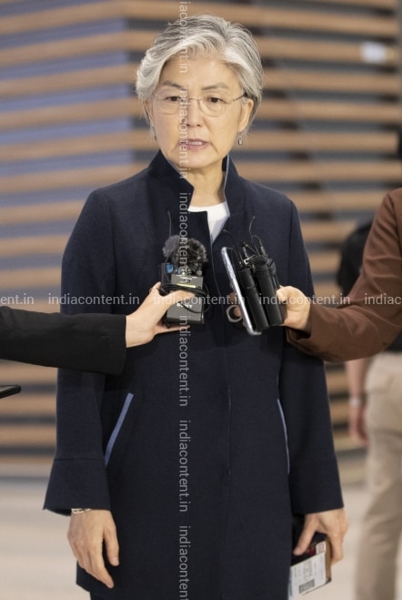 Buy Seoul Foreign Minister Kang Kyung wha speaks to reporters as she leaves Incheon International Airport west of Seoul on July 31 2019 for Bangkok to attend the annual gatherings involving the Association of Southeast Asian Nations ASEAN includi Pictures, Images, Photos By IANS - Others pictures