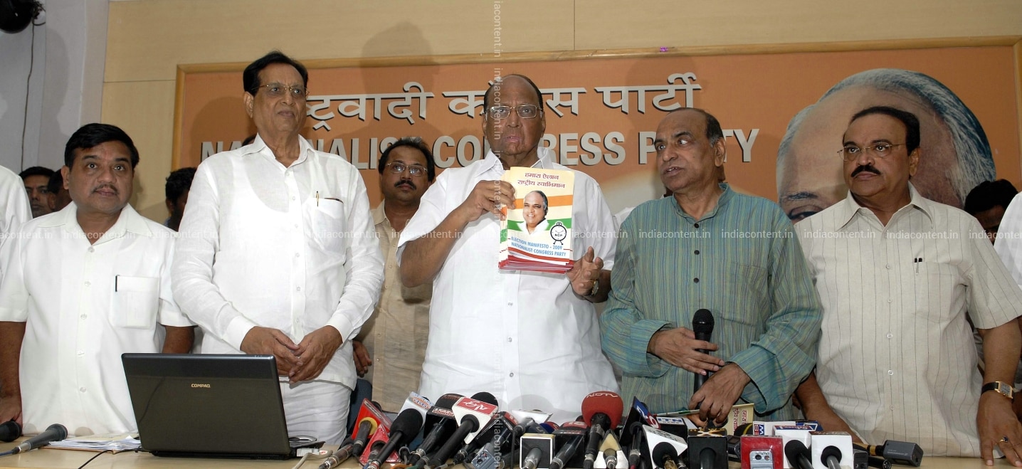 Sharad Pawar NCP leader Union Cabinet Minister of Agriculture Consumer Affairs Food and Public Distribution at the launch of the Party's election Manifesto in Mumbai Maharashtra India