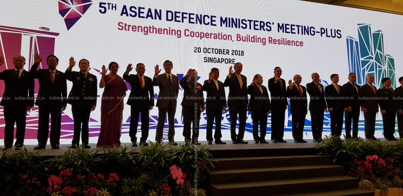 Singapore Defence Minister Nirmala Sitharaman with the defence ministers of ASEAN countries at the ASEAN Defence Ministers Meet Plus in Singapore on Oct 20 2018. Photo IANS DPRO