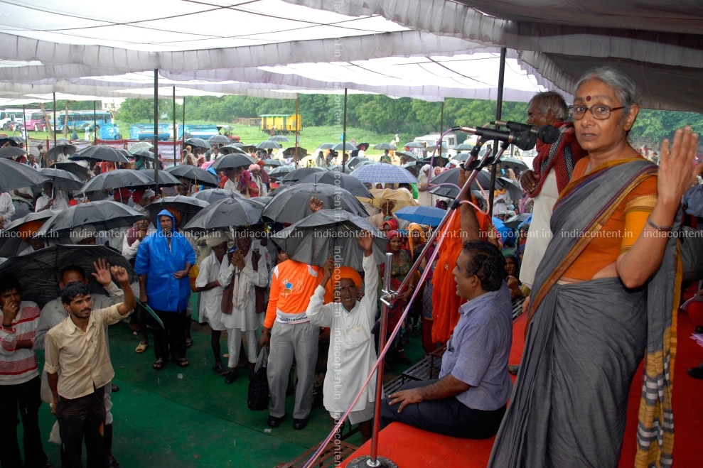 Social activist Aruna Roy addressing thousands of elderly people from different districts staged a dharna under the banner of 'Pension Parishad' in Jaipur Rajasthan to press for their demand of a monthly pension Old Age Lifestyle Demonstration Umbrella