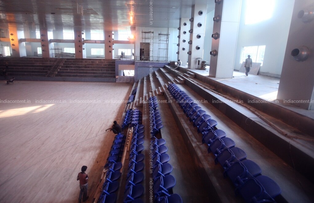 NEW DELHI INDIA SEPTEMBER 17 Workers at the SRCC Wrestling training venue for women wrestlers in New Delhi on September 17 2010. Work is happening on war footing to have the venue and its surrounding areas completed bferoe the athletes arrive on September 23. Photo by Qamar Sibtain India Today Group