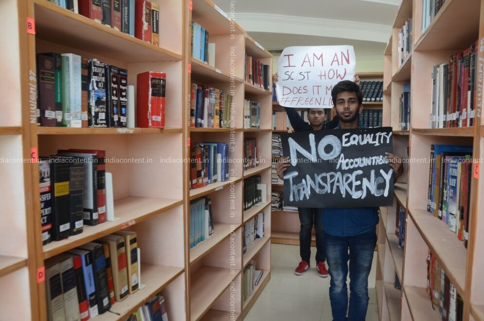 Students protests in NILU Bhopal. Photo by Pankaj tiwari