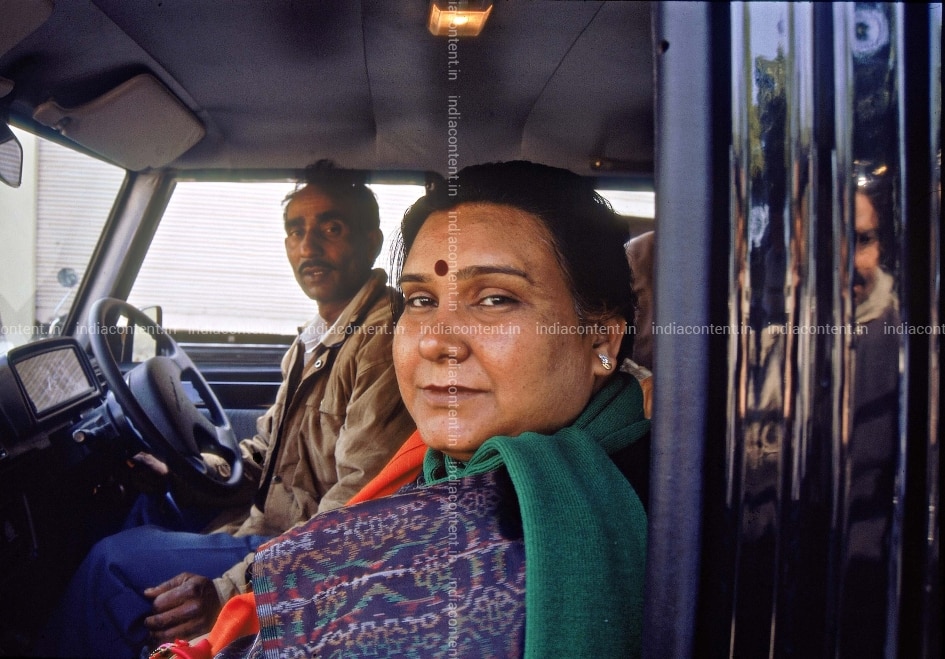 Sudha Rai Wife of Kalpnath Rai sitting while the driver is driving the car Congress Side Portrait