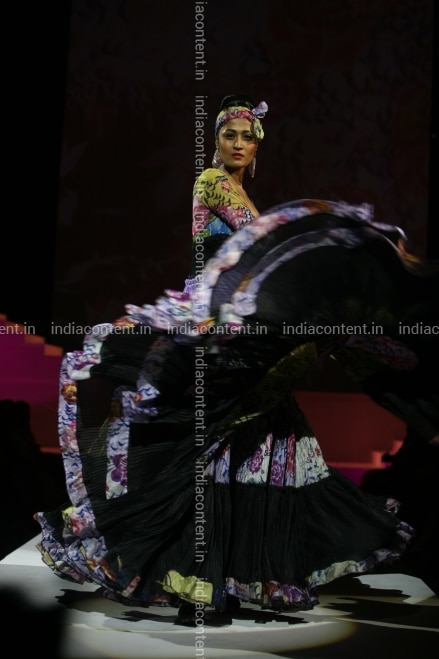 NEW DELHI INDIA - APRIL 21 A model walking the ramp in Suneet Varma creation at the fashion show Spring Couture 2012 collection celebrating his 25 years in the fashion industry at DLF Emporio atrium in New Delhi on Saturday. Photo by Ramesh Sharma India Today Group