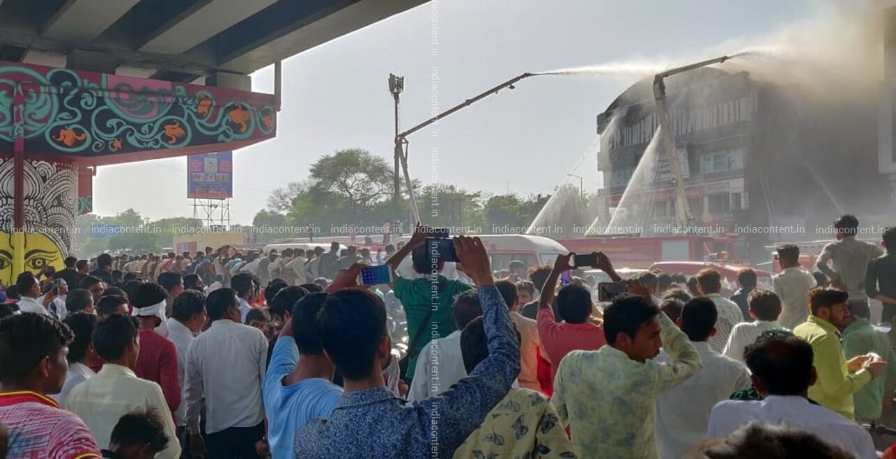 Surat Fire fighting operations underway after a massive fire broke out at a coaching centre atop a four storey building in Sarthana area of Gujarat's Surat on May 24 2019. 17 students were killed in the incident. Photo IANS