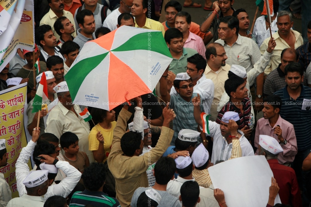 Supporters of Indian social activist Anna Hazare during a rally from Bandra to Juhu Choupatty in Mumbai Anna Hazare Veteran social activist began a fast unto death to press for the demand to involve civil society in formulation of the anti graft Lokpal Bill against Anti Corruption Black Money Hunger Strike