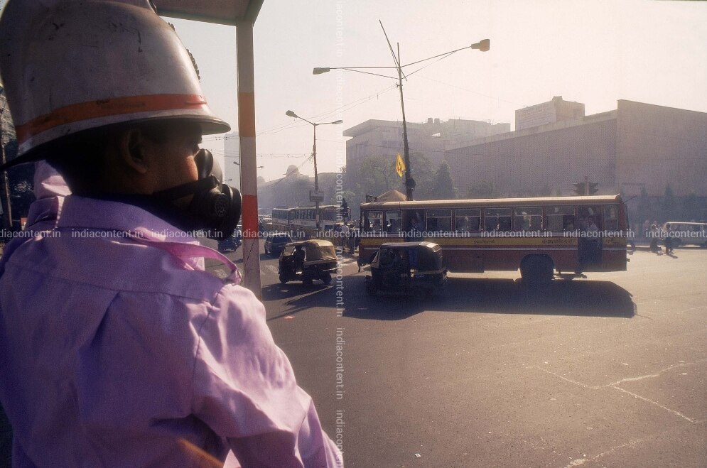 Buy TRAFFIC POLICEMAN USING POLLUTION MASK Pictures, Images, Photos By DILIP BANERJEE - Archival pictures