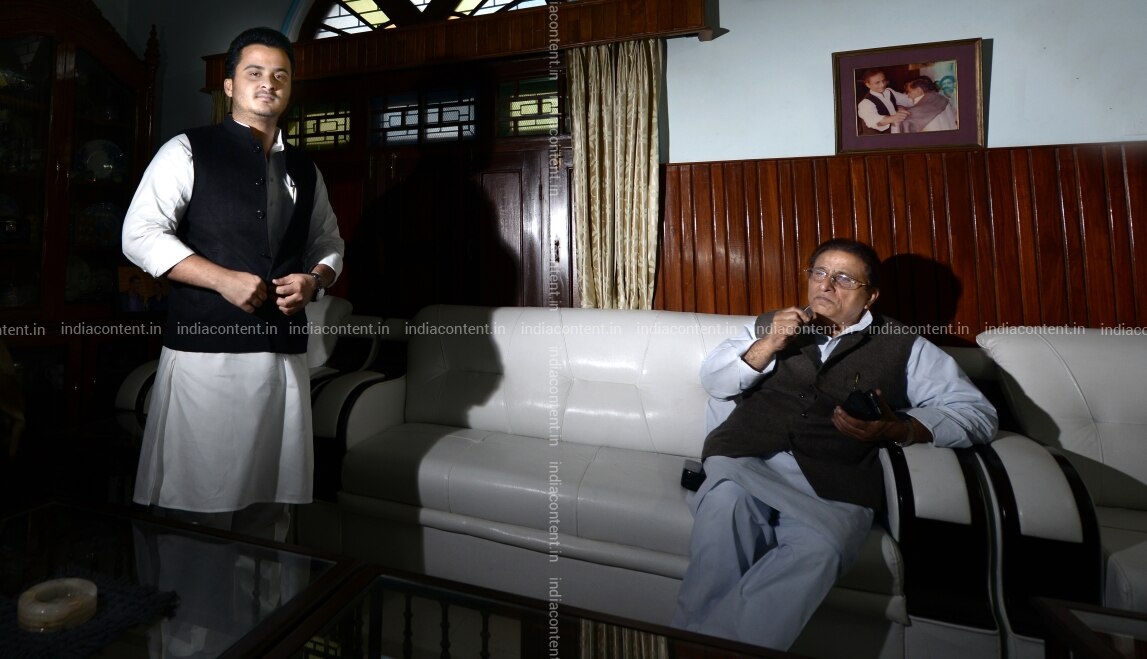 RAMPUR, UTTAR PRADESH-JANUARY 31: Samajwadi Party Leader, Azam Khan clicked with his son Abdullah Azam Khan at their residence in Rampur. Photo by Chandradeep Kumar India Today Group