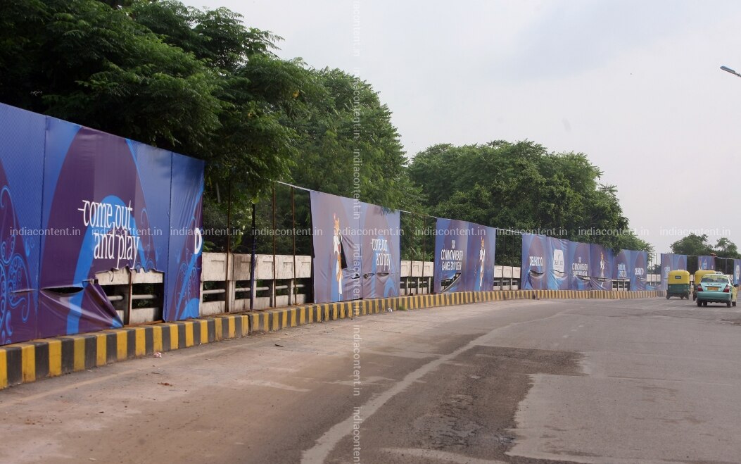 NEW DELHI INDIA SEPTEMBER 20 Tattered remains of the view cutters installed to hide the seamy side of the city during the Commonwealth Games on the Ranjit Singh flyover in New Delhi on Monday September 20 2010. Photo by Parveen Negi India Today Group