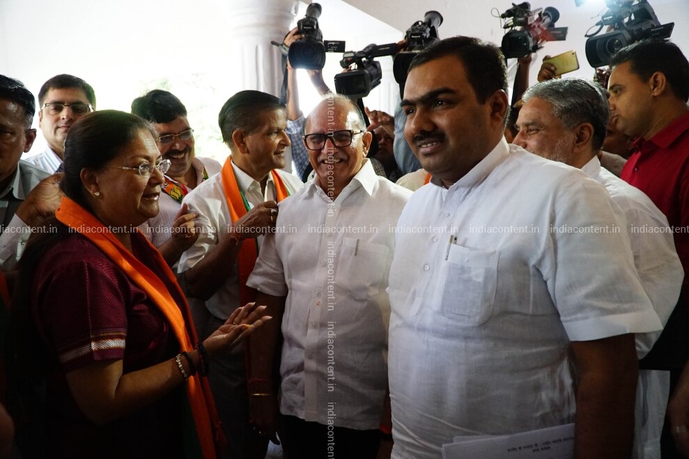 Rajasthan C M Vasundhara Raje, Chandra Shekhar (organizing secretary of Rajasthan appointed on 18th August); State President Ashok Parnami. Photo by Purushottam Diwakar