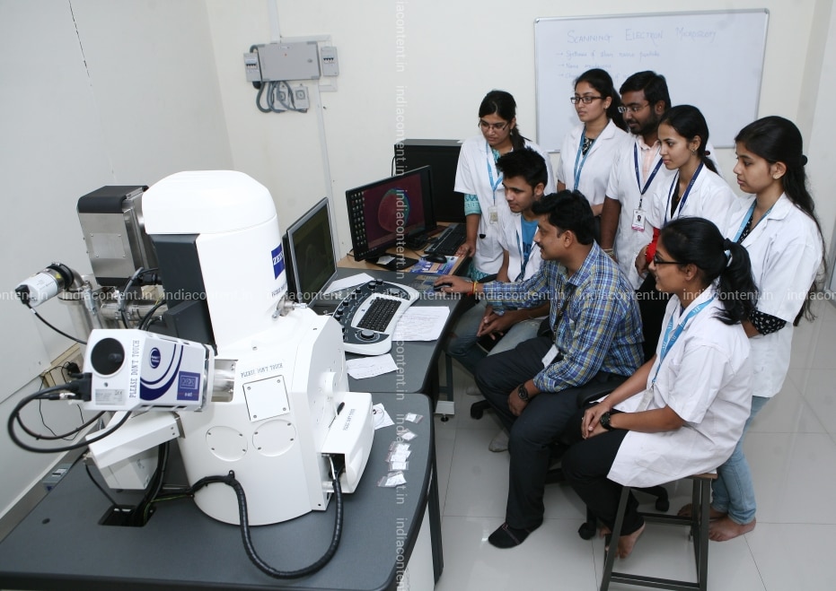 Students of the departmet of biotechnology during a demonstration session on the 'Scanning electron microscope' at the Vellore Institute of Techology VIT at Vellore in Tamil Nadu on Tuesday May 24 2016