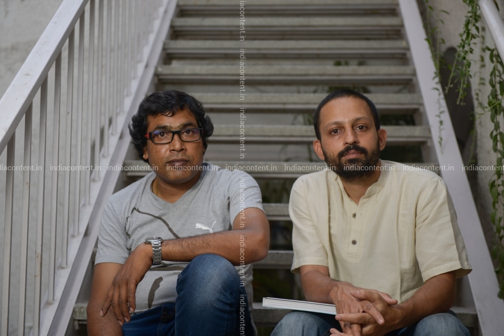Venkat Raman Singh Shyam, a contemporary Indian Gond artist who works with murals, etchings, mixed media and animation and Writer publisher S Anand at Khoj Artist Studios, Khirkee Extension on April 29, 2016 in New Delhi. Photo by Vikram Sharma (Venkat Shyam)