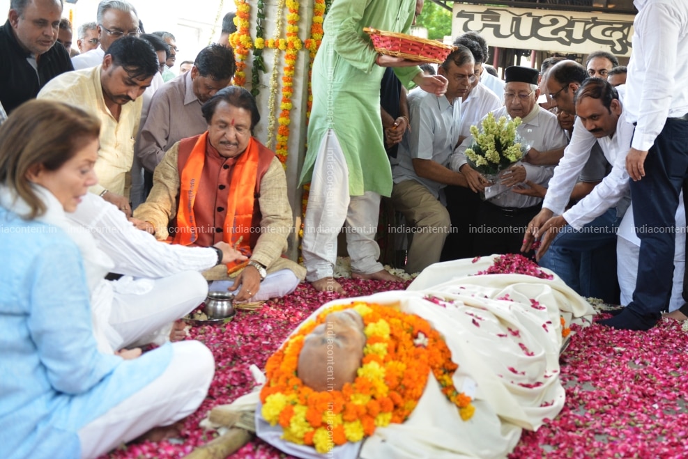 NEW DELHI INDIA SEPTEMBER 08 Family members and relatives carry the mortal remains of veteran lawyer Ram Jethmalani at Lodhi Road Crematorium in New Delhi. Photo by K Asif India Today Group