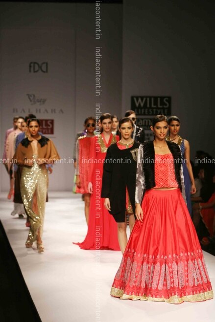 NEW DELHI INDIA - FEBRUARY 18 Models walks the ramp to showcase creations by designer Vijay Balhara on Day 4 of the Wills Lifestyle India Fashion Week WIFW 2012 in Delhi. Photo by Ramesh Sharma India Today Group